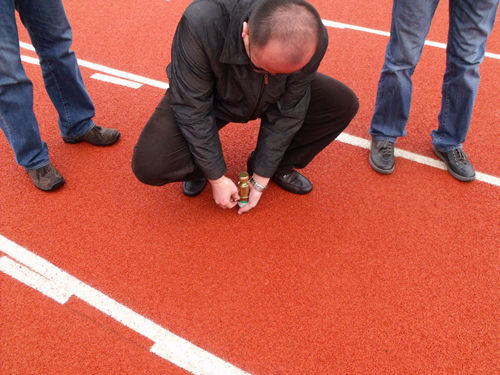 以再生膠粒與單組分膠水混合,由機(jī)械攤鋪而成。造價(jià)低、透氣、透水,透氣型的塑膠場(chǎng)地是采用橡膠顆;旌螾U膠水(膠水使用量。褂脵C(jī)械攤鋪的方法攤鋪的,等膠水固化后使用專用噴膠設(shè)備噴涂PU膠水和細(xì)小PU顆粒(或EPDM顆粒)混合體,噴在鋪設(shè)好的塑膠場(chǎng)地表面做成的塑膠場(chǎng)地。