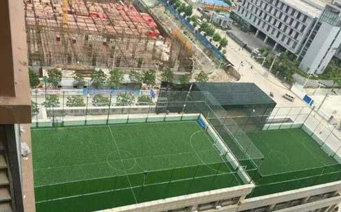 據了解,該球場系武漢市第二家對外開放的空中人造草足球場,主要用于五人制比賽。“我們都是有正規手續的,非周末的白天基本上沒人在這踢球,晚上才是踢球高峰,一般會踢到10點左右。球場周圍和上空都安裝了攝像頭及護網,以確保足球不會被踢飛到樓下。”球場的負責人倪明介紹。