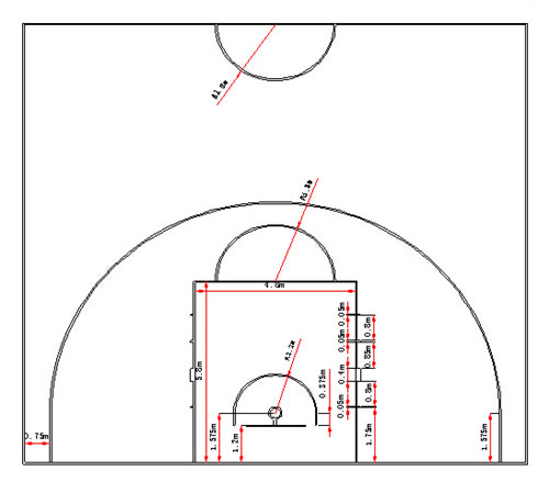 二、籃球場尺寸為:長28米,寬15米,線寬0.05米,籃球場的丈量是從界線的內沿量起。