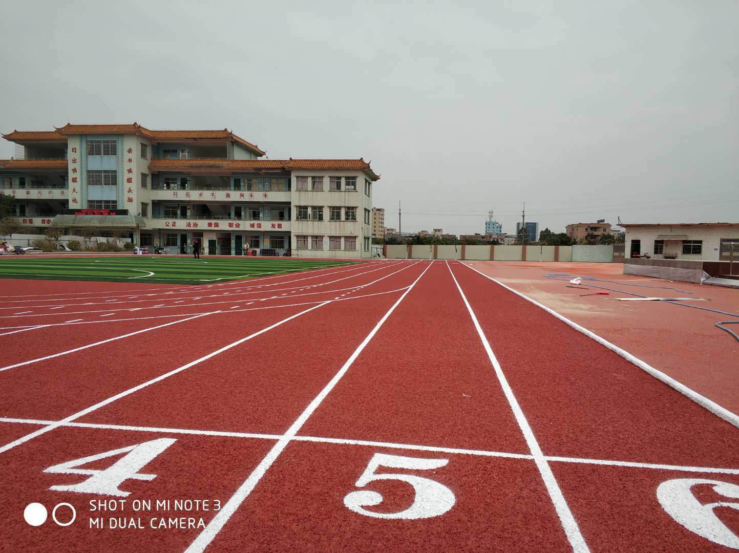 混合式塑膠跑道是PU與黑色橡膠顆粒按一定比例混合而成跑道系統。材料運到現場按一定比例混合,加入催化劑攪拌均勻,攤鋪,常溫硫化成型,該面層是現時*有國家標準的塑膠面層材料,主要用于專業比賽用場地等。(復合式和混合式二者性能介于全塑型與透氣型之間,價格要略低于全塑型等塑膠跑道,但也比透氣型高了不少,對基礎要求較高)